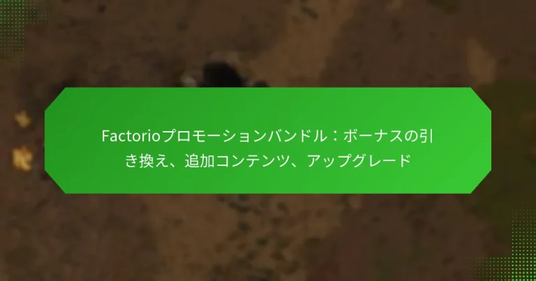 各プロモーションバンドルには、一般的にFactorioの基本ゲームと、リリースされた拡張パックやDLCが含まれています。例えば、「Factorio: ゲーム + 拡張バンドル」には、メインゲームと最新の拡張が含まれており、新しい機能やゲームプレイメカニクスにアクセスできます。