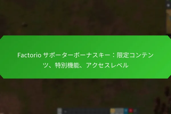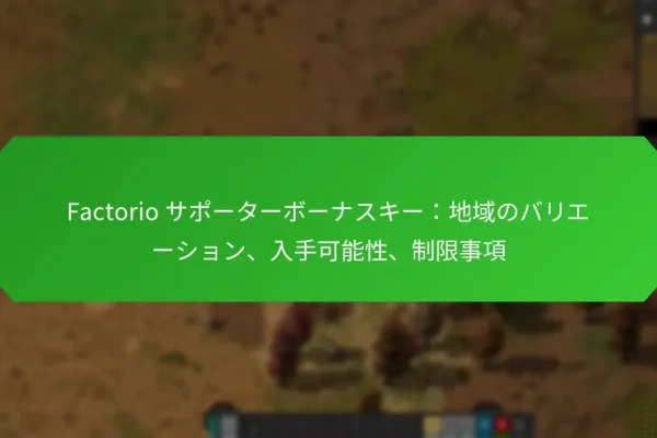 Factorioサポーターボーナスキーは、開発者を支援しながらゲーム体験を向上させる特別なゲームキーです。これらのキーの入手可能性や種類は地域によって大きく異なり、独占的なキーや異なる価格構造がこれらのボーナスへのアクセスに影響を与えます。プレイヤーは、これらの貴重なキーを取得できるように、現在のプロモーションや地域の提供情報を常に把握しておくべきです。 Factorioサポーターボーナスキーとは? Factorioサポーターボーナスキーは、開発者を支援しながらプレイヤーに追加の利点を提供する特別なゲームキーです。これらのキーは、ゲーム体験を向上させ、Factorioの継続的な開発に貢献するように設計されています。 サポーターボーナスキーの定義と目的 サポーターボーナスキーは、プレイヤーにFactorioの独占的なコンテンツや機能へのアクセスを許可するユニークなゲームキーです。その主な目的は、プレイヤーがゲームを楽しみながら開発者を財政的に支援できるようにすることです。 これらのキーには、追加のゲーム内アイテム、アップデートへの早期アクセス、または独占的なコミュニティ機能などの特典が含まれることがよくあります。これらのキーを購入することで、プレイヤーはゲームの継続的な開発と改善に直接貢献できます。 サポーターボーナスキーを所有することの利点 独占的なゲーム内コンテンツや機能へのアクセス。 新しいアップデートや拡張への早期アクセス。 ゲームの継続的な開発とメンテナンスへの支援。 熱心なプレイヤーや開発者のコミュニティへの参加。 サポーターボーナスキーを所有することで、Factorioの体験が大幅に向上します。プレイヤーは通常のキー保持者にはないユニークなアイテムや機能を得ることができ、ゲームプレイがより魅力的になります。 さらに、アップデートへの早期アクセスにより、プレイヤーは一般公開前に新しいコンテンツを体験できるようになります。これにより、より豊かなゲーム体験が得られ、開発者にフィードバックを提供することが可能になります。 サポーターボーナスキーがゲーム開発者を支援する方法 サポーターボーナスキーは、Factorioの開発者にとって重要な財政的支援を提供します。これらのキーから得られる資金は、アップデート、バグ修正、新しいコンテンツの作成など、継続的な開発コストをカバーするのに役立ちます。 これらのキーを購入することで、プレイヤーはゲームの持続可能性に貢献し、開発者がFactorioを改善し拡張し続けることを保証します。このモデルは、コミュニティと開発者の間に強い関係を育み、協力とフィードバックを促進します。 サポーターボーナスキーの一般的な別名 サポーターボーナスキーは、コミュニティ内でさまざまな名前で呼ばれることがあります。一般的な別名には以下が含まれます: サポータキー ボーナスキー パトロンキー これらの用語はしばしば互換的に使用されますが、すべてゲームの開発を支援しながら追加の利点を提供するキーの同じ概念を指しています。 サポーターボーナスキーと通常のキーの主な違い サポーターボーナスキーと通常のキーの主な違いは、提供される追加の利点にあります。通常のキーは基本ゲームへのアクセスを許可しますが、サポータキーは独占的なコンテンツや特典を提供します。 サポーターボーナスキーは、標準のキーに比べて価格が高くなることもあり、提供される追加の価値を反映しています。プレイヤーは、どのタイプのキーを購入するかを決定する際に、追加機能への関心を考慮すべきです。 要約すると、両方のキータイプがFactorioへのアクセスを許可しますが、サポーターボーナスキーはゲームの継続的な開発を支援するユニークな利点を提供することで体験を向上させます。 地域の違いがFactorioサポーターボーナスキーに与える影響 地域の違いは、Factorioサポーターボーナスキーの入手可能性や種類に大きな影響を与えます。異なる地域には独占的なキーや異なるボーナス、特有の価格構造があり、これらはプレイヤーの体験やボーナスへのアクセスに影響を与える可能性があります。 特定のボーナスキーへの独占アクセスを持つ地域 一部の地域には、他の場所では入手できないユニークなボーナスキーがあります。たとえば、特定の国のプレイヤーは、サポーターパッケージの一部として独占的なゲーム内アイテムや機能を受け取ることがあります。この独占性は、そのプレイヤーにとってゲーム体験を向上させ、他の人がアクセスできないユニークなコンテンツを提供します。 独占キーを持つ地域の例には、プロモーションイベントが開催される特定のヨーロッパ諸国が含まれます。これらのキーは、地域の購入を促進するための期間限定オファーが付いていることが多く、地域のプレイヤーにとって魅力的です。 地理的な場所に基づくボーナスの違い Factorioサポータキーに関連するボーナスは、地理的な場所に